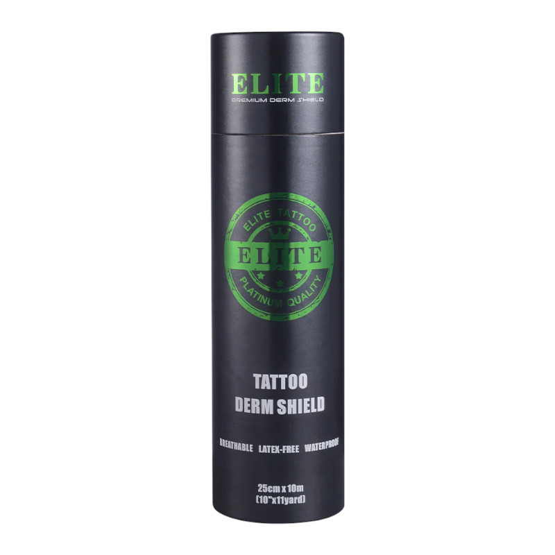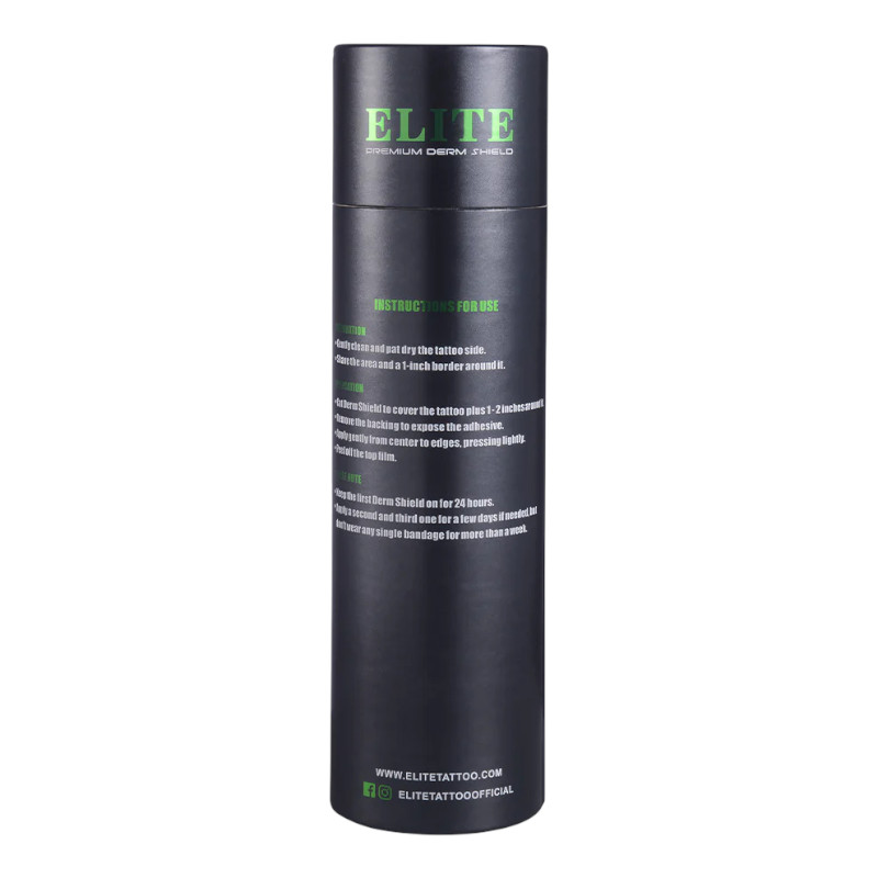 To ensure your freshly inked tattoo heals optimally, we recommend the ELITE Premium Derm Shield. The roll is 25 cm wide and 10 meters long. It offers effective protection against infection and promotes a moist wound environment. Its microporous structure prevents the penetration of microorganisms and fluids. Very easy to apply, self-adhesive with excellent adhesion. The ultra-thin 0,01 mm transparent film conforms perfectly to the skin and moves with you. Comfortable to wear without pressure points or a feeling of tightness.