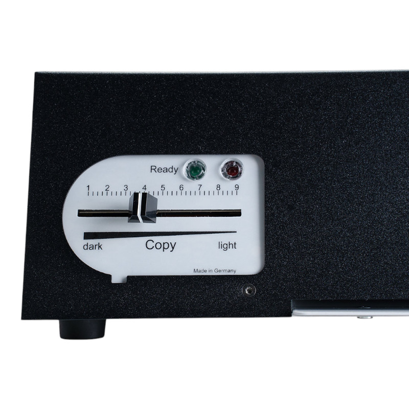 Our experience shows that not every template is suitable, and this is precisely where the most common causes of poor or unusable copies lie. The carbon content of the black ink is crucial for creating a perfect template with the thermal copier. However, this is not visible to the naked eye, so experience and experimentation are necessary. If your copies are too faint, the dial must be set to a lower number. If the copies are too dark, the dial must be set to a higher number. The carbon content of the black ink is crucial for creating a perfect template with the thermal copier.